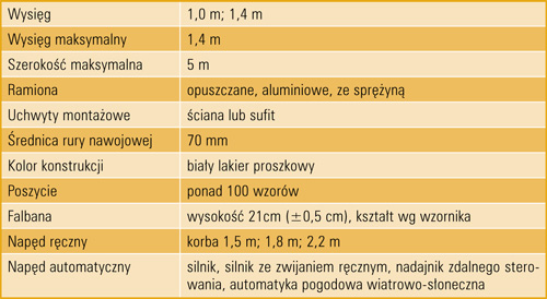 * Podnoszone ramiona z aluminium, wyposażono w sprężynę, która napina tkaninę i zapobiega składaniu ramion pod naporem wiatru.